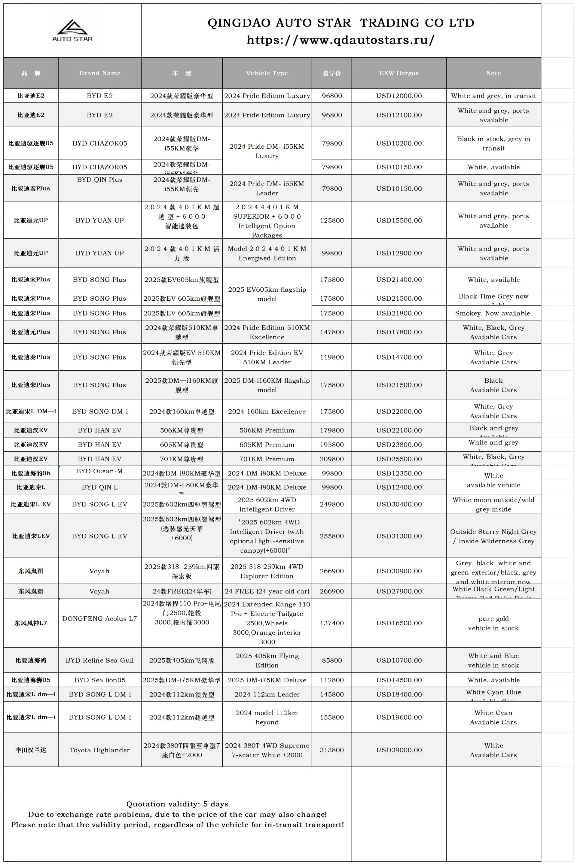 Мы предлагаем широкий ассортимент автомобилей, включая Mercedes-Benz, BMW, BYD, Volvo, Toyota, Honda, Volkswagen, Li Auto, Jikr, Tesla, и большинство других брендов, доступных на китайском рынке.